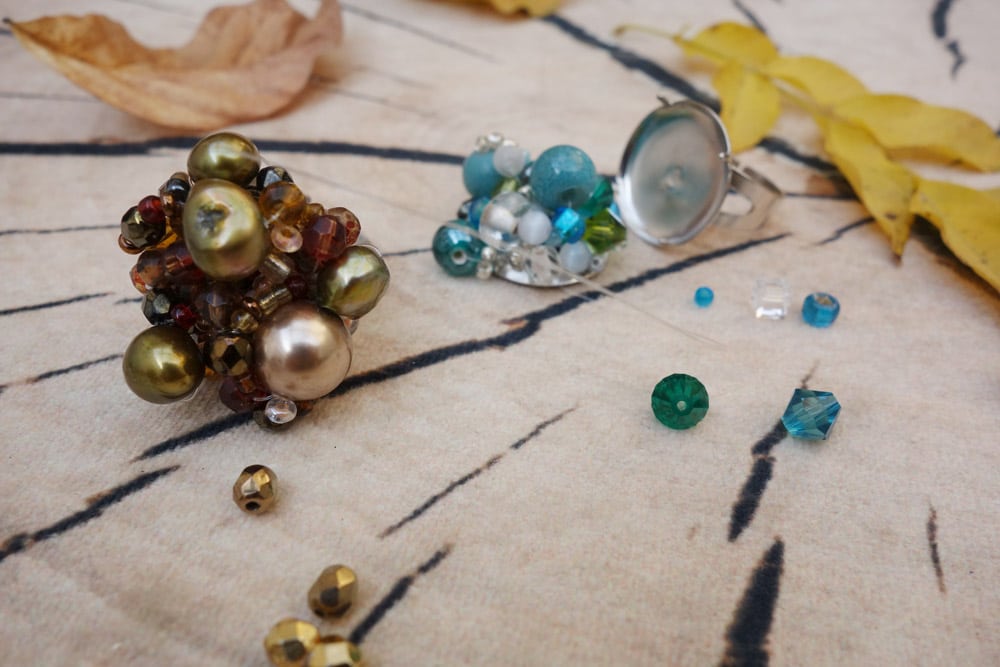 2 Surtout, tu alternes le style et les couleurs des perles au maximum pour donner du relief à la bague.
