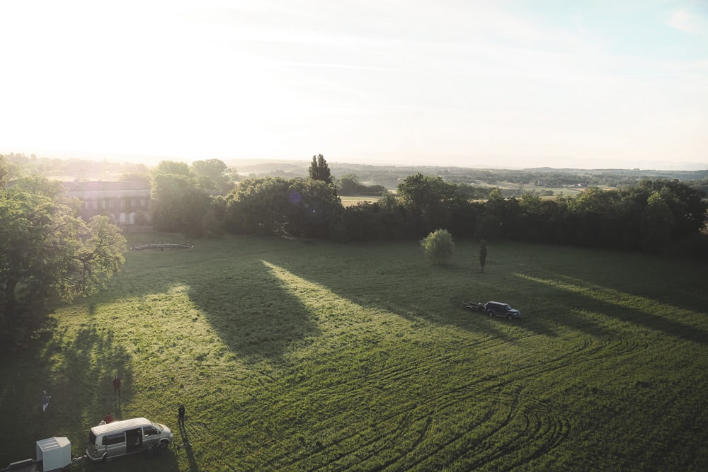 On arrive sur l’esplanade à l’aube, un champ vert mouillé est dégarni de tout ce qui pourrait faire entrave au ballon d’air chaud. Il y a là trois 4×4 qui transportent leurs passagers et une montgolfière chacun qu’ils placent à bonne distance les unes des autres. J’ai encore les yeux qui piquent. C’était difficile de contempler le merveilleux petit déjeuner préparé par Géraldine, notre hôte. Et, bien malheureusement, de n’être capable, à cette heure matinale, que d’avaler un simple thé, le ventre noué.
