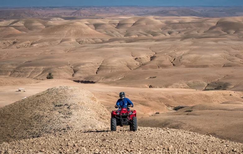 Pour approcher le désert dans l’action, voici une excursion en quad dans le Désert d’Agafay près de Marrakech bien organisée, promesse de sensations fortes dans un cadre incroyable.